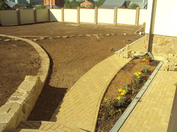 Мощение дорожек тротуарной плиткой